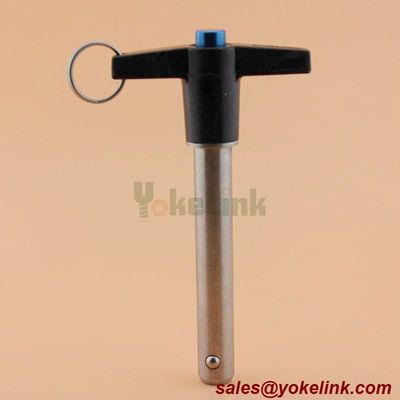 Los pines de liberación rápida del mango Yokelink T tienen una amplia gama de usos en aplicaciones de fijación, localización y alineación. Los pines no se liberarán hasta que se presione el botón del mango.Una vez que el botón está presionado, las bolas se retraen en el tallo permitiendo que el alfiler se inserte o retire dentro o fuera de un agujero.Las manijas de los pines que se enumeran a continuación están hechas de aleación de aluminio y negro anodizadoTambién se dispone de manijas de acero inoxidable. Los pines están provistos de un anillo de separación de acero inoxidable para fijar un conjunto de cables. Se dispone de pines de otras longitudes de agarre.